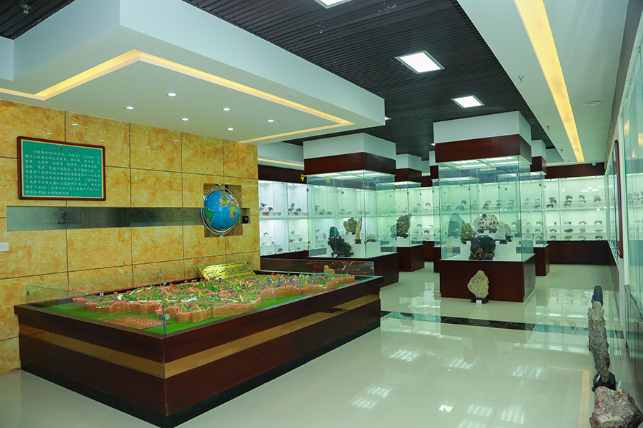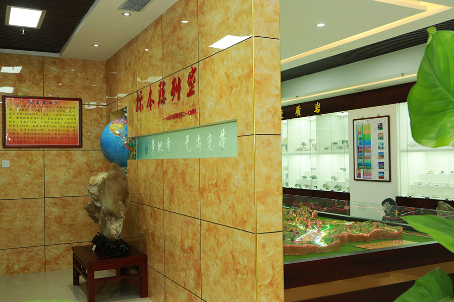 標本室面積約135平方米,主要由24組展柜、5組展臺、8個展樁、1個沙盤組成,設(shè)計至少可置600塊標本。目前,標本室已初具規(guī)模,展柜按照礦物標本、巖漿巖標本、沉積巖標本、變質(zhì)巖標本、化石標本分區(qū),共放置礦物標本135塊、巖漿巖標本72塊、沉積巖標本36塊、變質(zhì)巖標本72塊、化石標本181塊,連同展臺、展樁所展標本14塊,共計510塊。