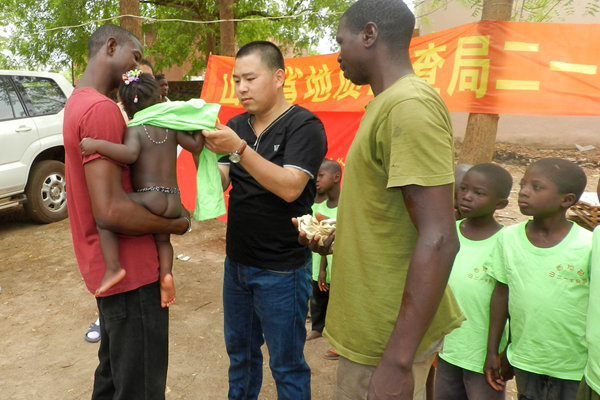 5月6日在非洲馬里DOGO,217隊(duì)馬里金礦項(xiàng)目組在駐地為當(dāng)?shù)卮迕衽e辦了“送清涼 獻(xiàn)愛心”活動(dòng),聞?dòng)嵡皝?lái)的人都?xì)g欣鼓舞、喜不自勝。